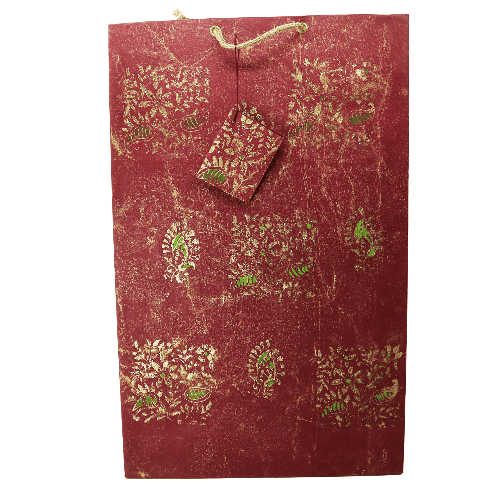 A lightweight handmade bag used as a lifting bag. It has beautiful work with dried flowers on it with green and red colour. This bag is made of handmade sheet, which is created using traditional techniques by skilled artisans. The sheet is made from recycled materials, making this bag not only fashionable but also environmentally friendly.