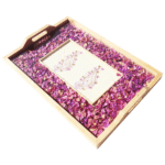 • The tray can be made from various materials such as wood or glass and can come in different sizes and shapes.